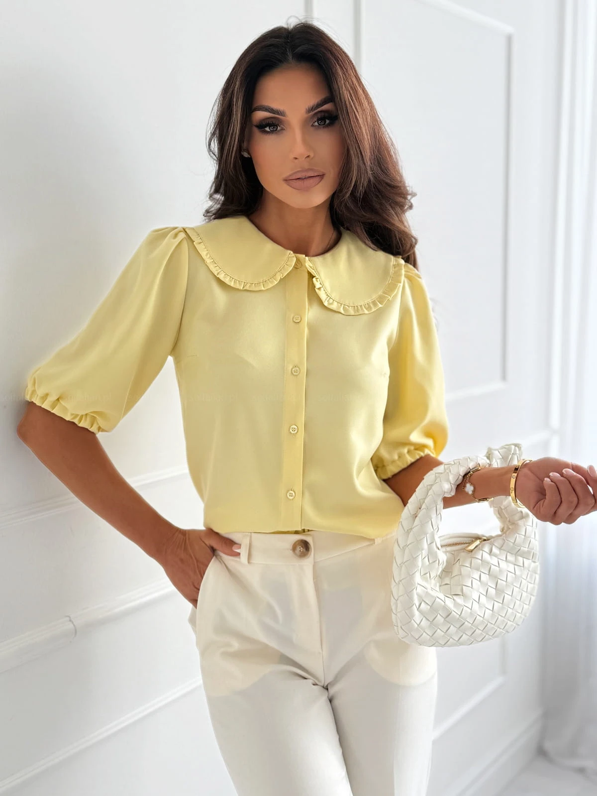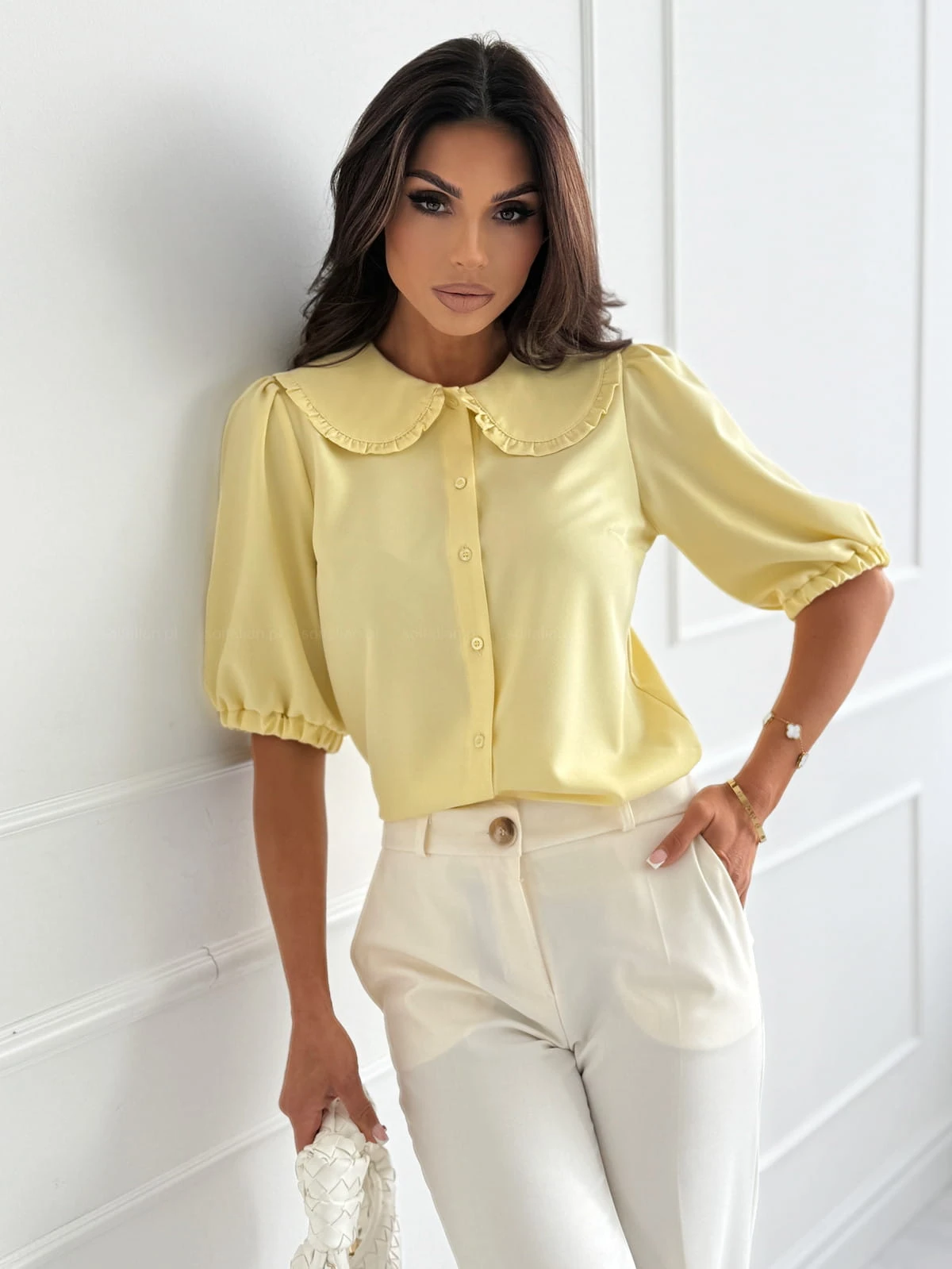Bluzka koszulowa FRILL yellow z kołnierzykiem