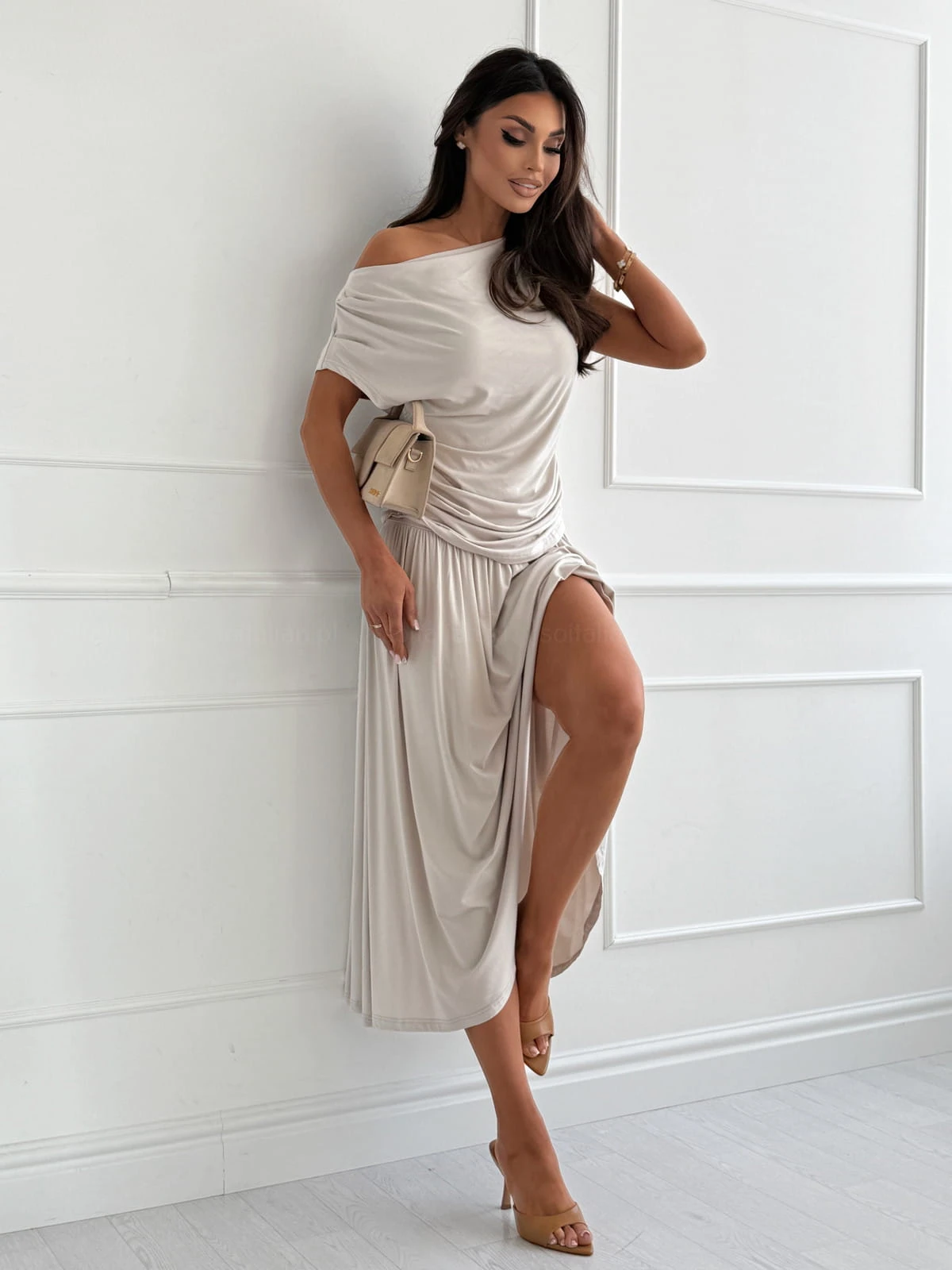 Komplet SAN REMO latte (bluzka+spódnica z paskiem)
