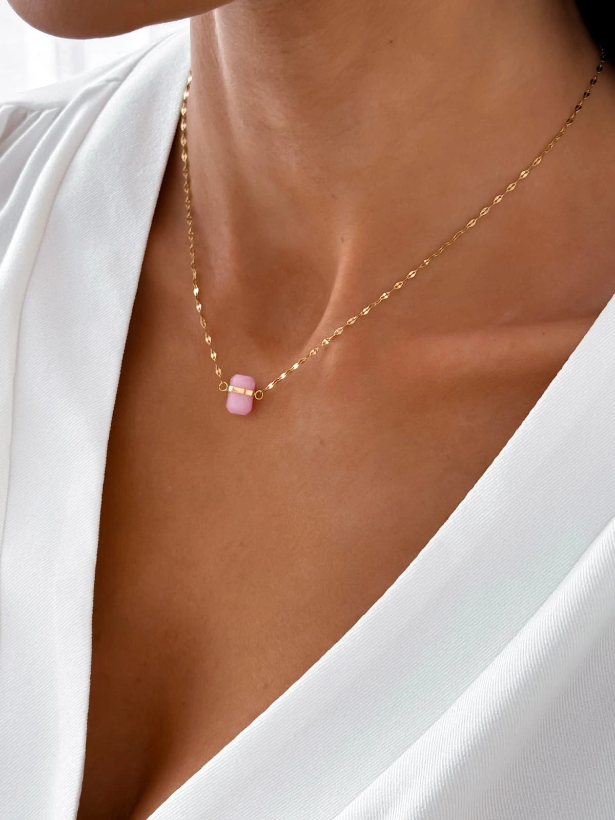 Łańcuszek z kryształkiem KWARC RÓŻOWY / kamień miłości