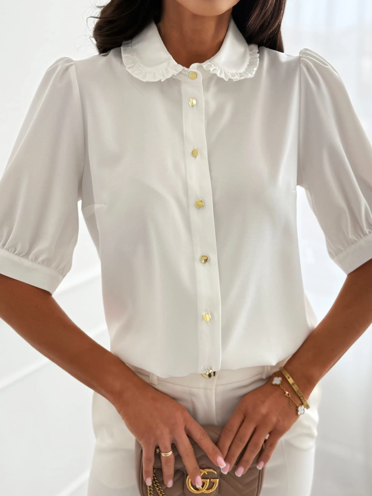 Bluzka koszulowa SEWILLA white z kołnierzykiem