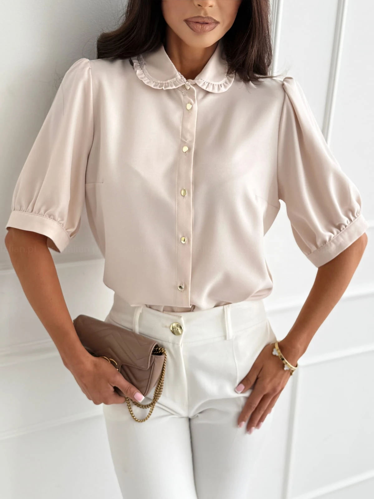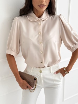 Bluzka koszulowa SEWILLA nude z kołnierzykiem