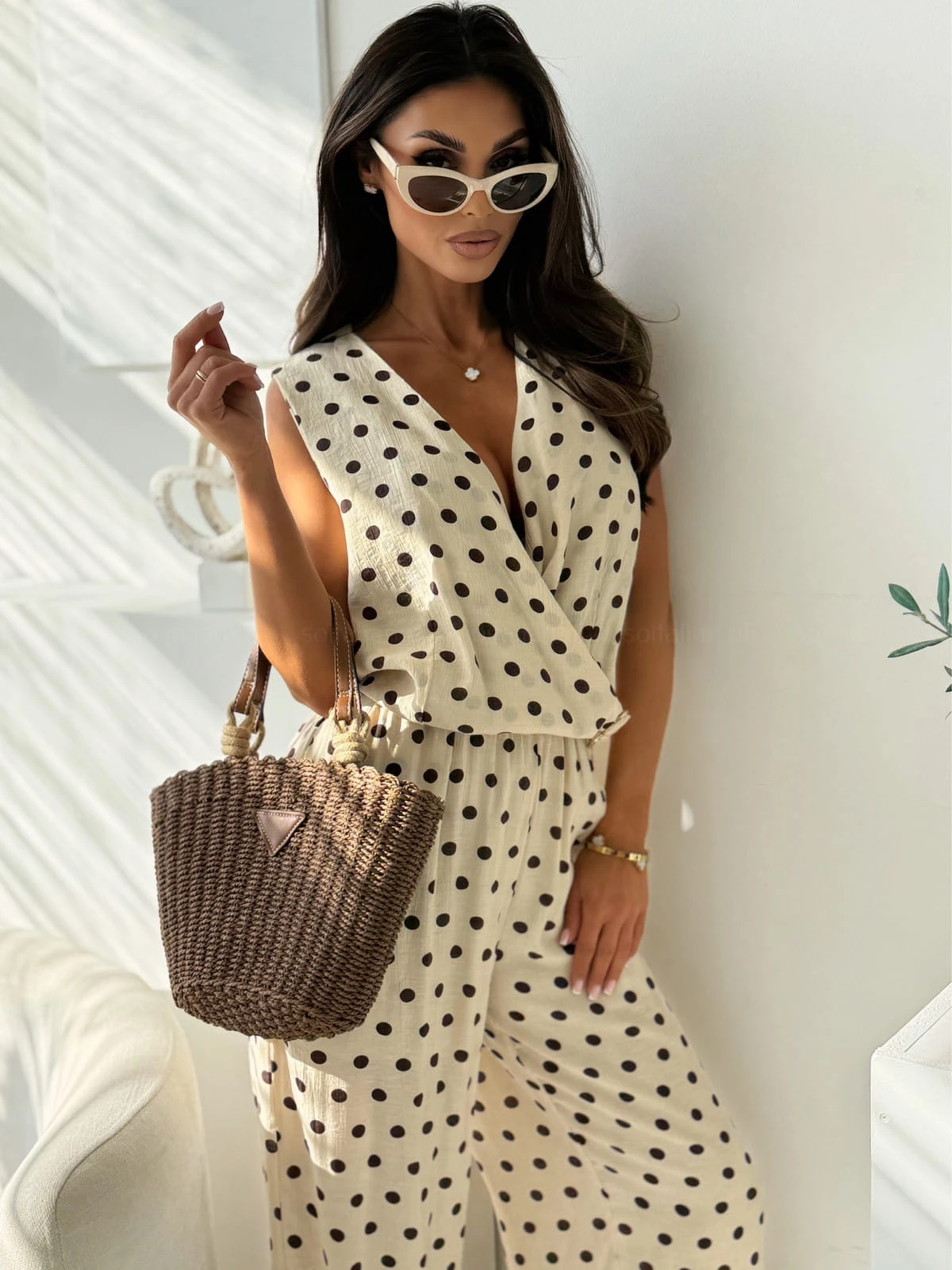 Komplet ALENNA DOTS nude/chocolate (top+spodnie)