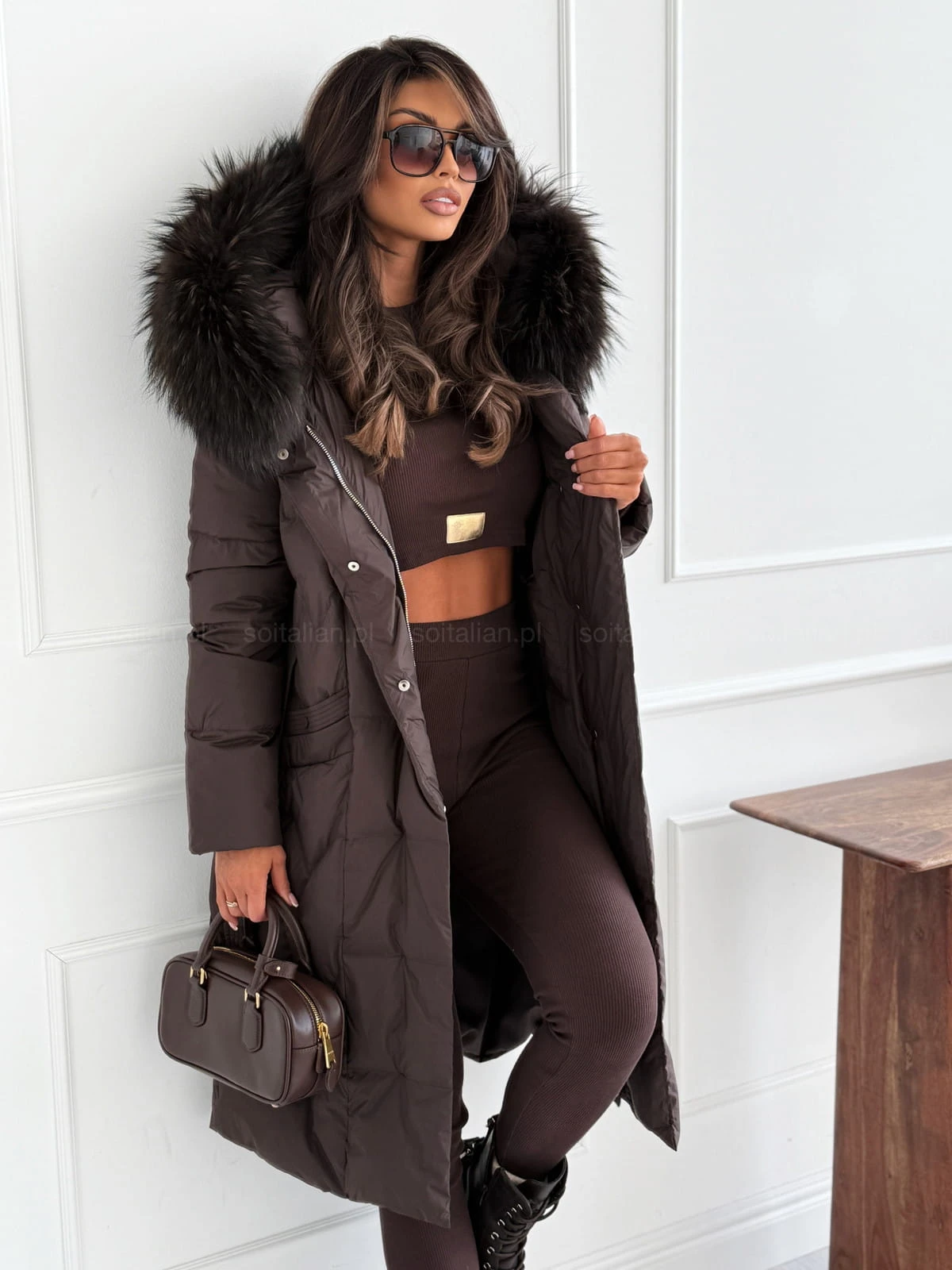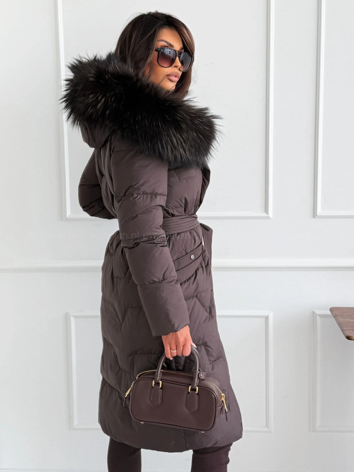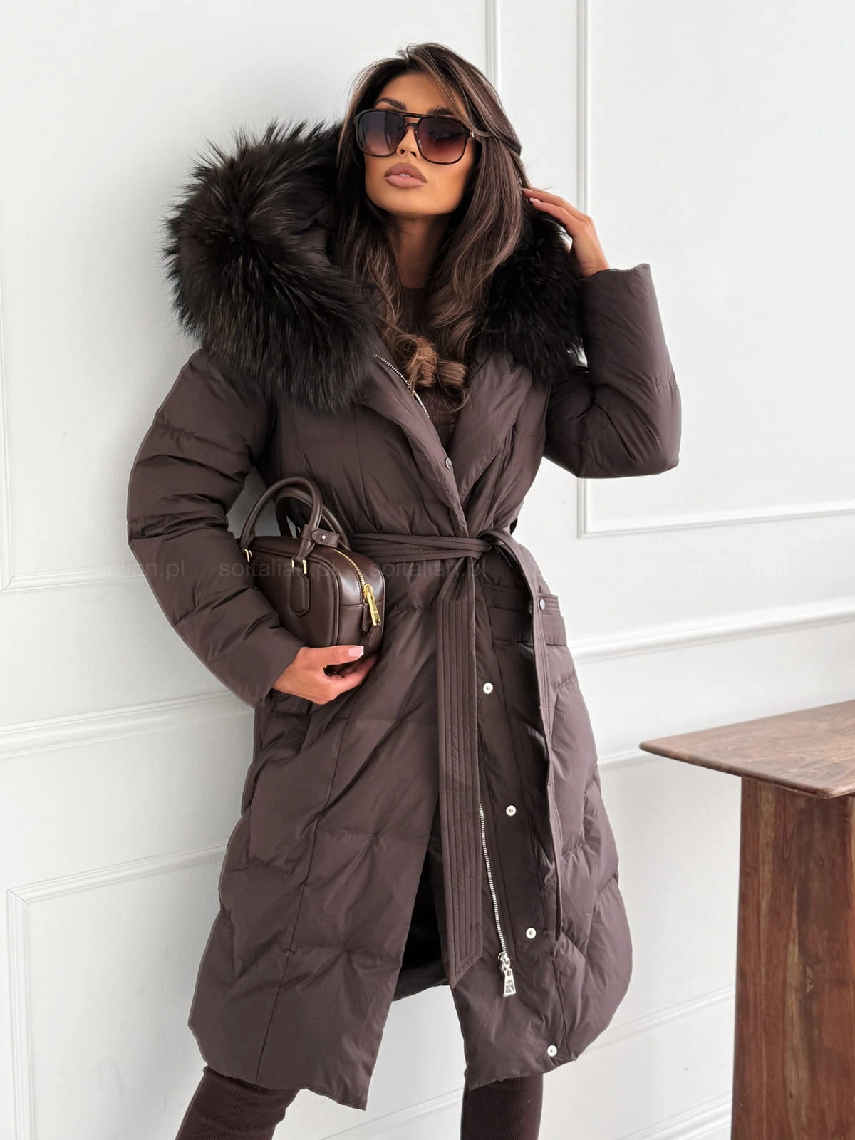 Płaszcz/kurtka puchowa MORLEY RIVER CHOCOLATE z naturalnym futrem*