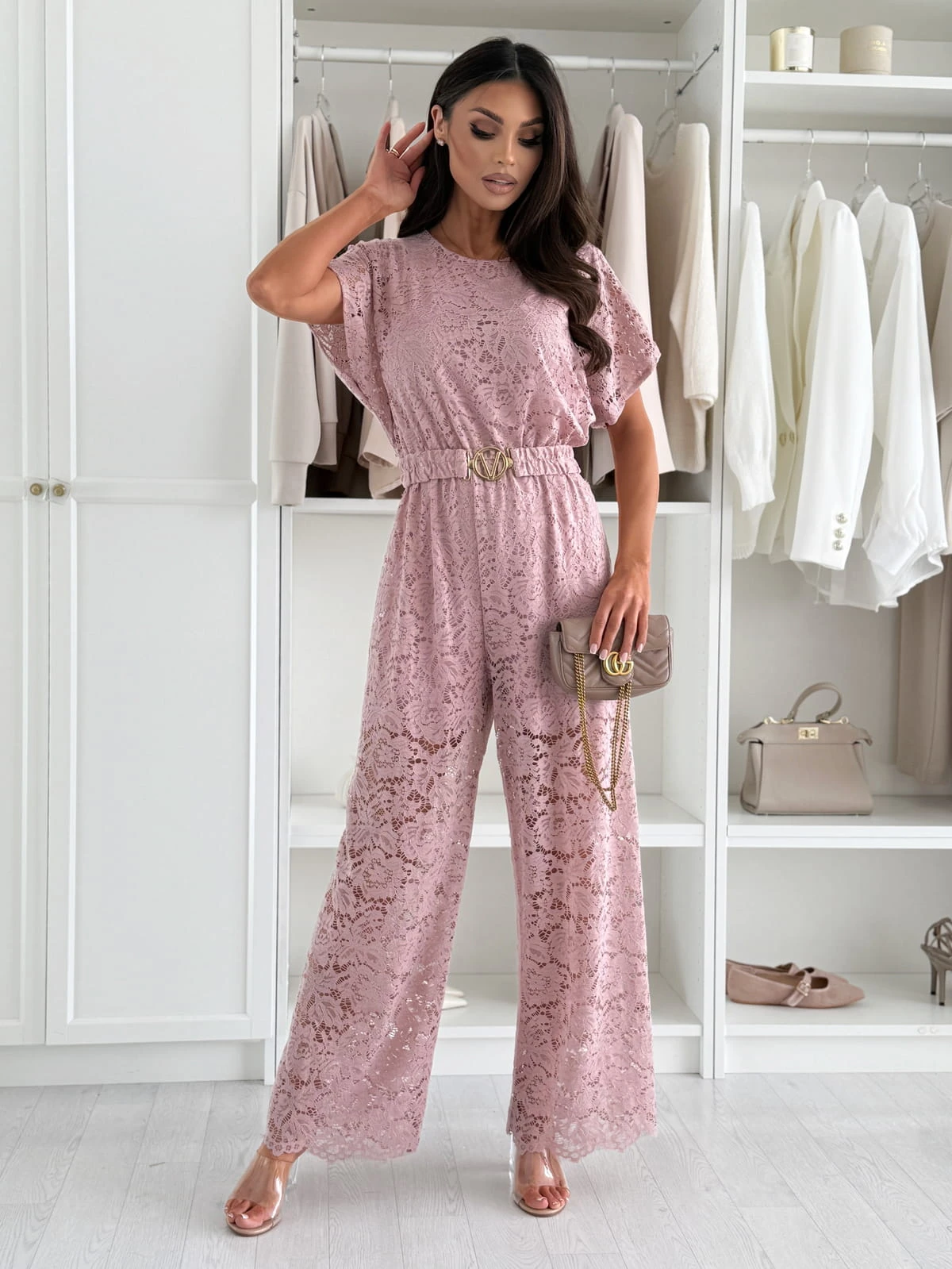 Kombinezon koronkowy ROMERO powder pink