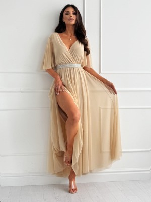 Sukienka DAZZLING MAXI nude z paskiem