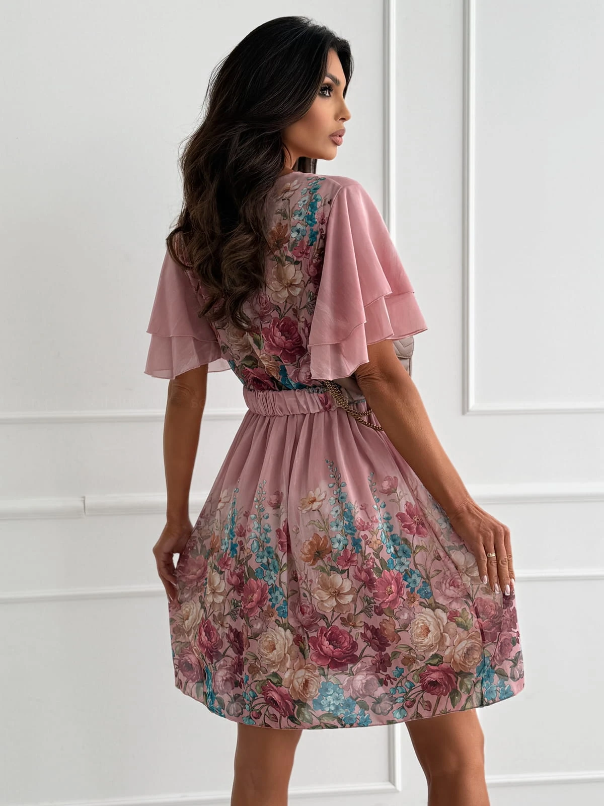 Sukienka kopertowa FRESCA dusty pink&flowers