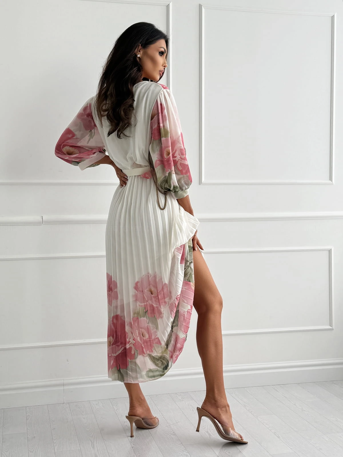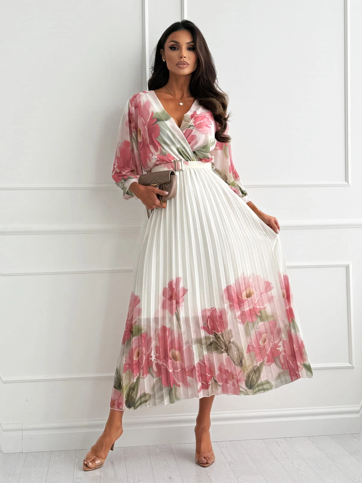 Sukienka maxi DARLING creamy/pink z plisowanym dołem