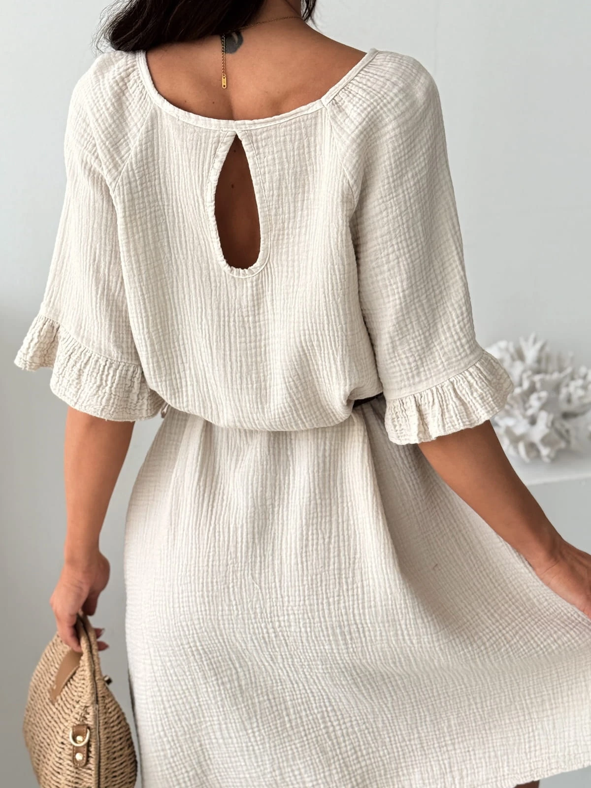 Sukienka muślinowa MONACO NUDE z paskiem