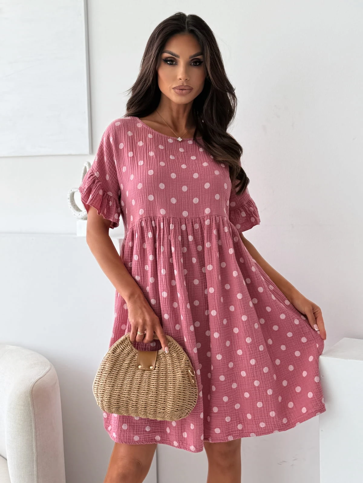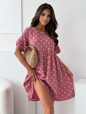 Sukienka muślinowa TOULOUSE pink/dots