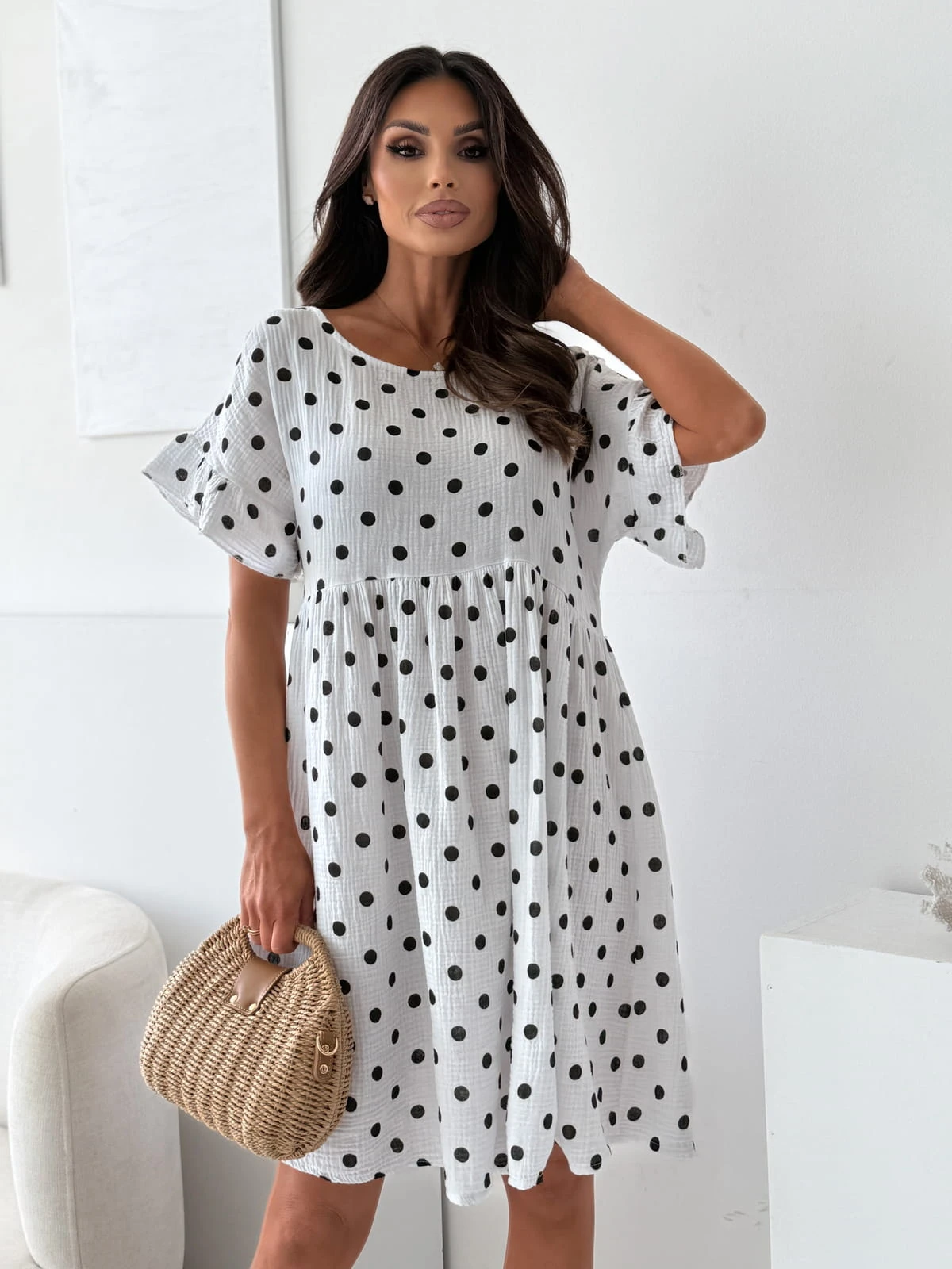 Sukienka muślinowa TOULOUSE white/dots
