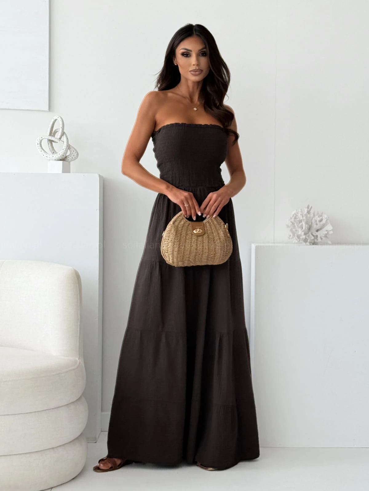 Sukienka muślinowa maxi PRIMA PORTA chocolate