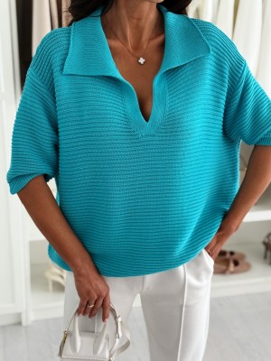 Sweterek NOVIA TURQUOISE z kołnierzykiem