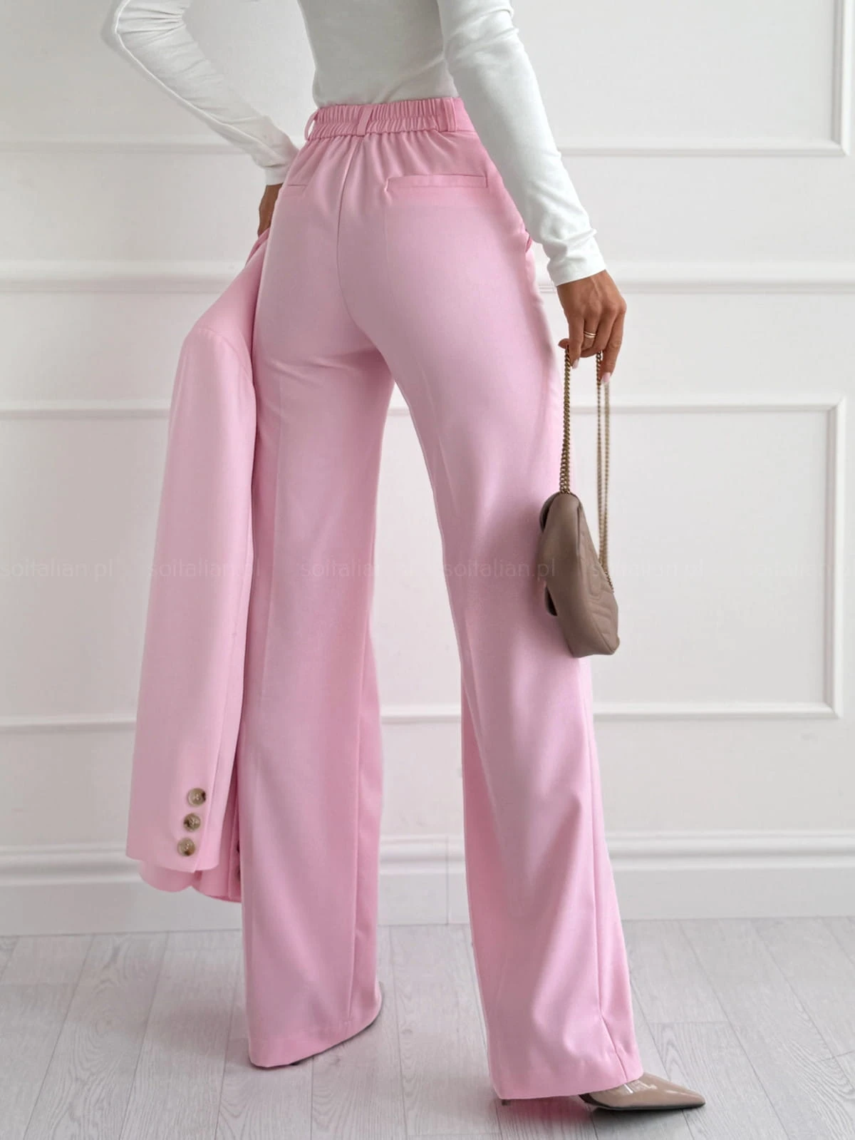 Spodnie garniturowe IMPERIAL PINK z gumką w pasie