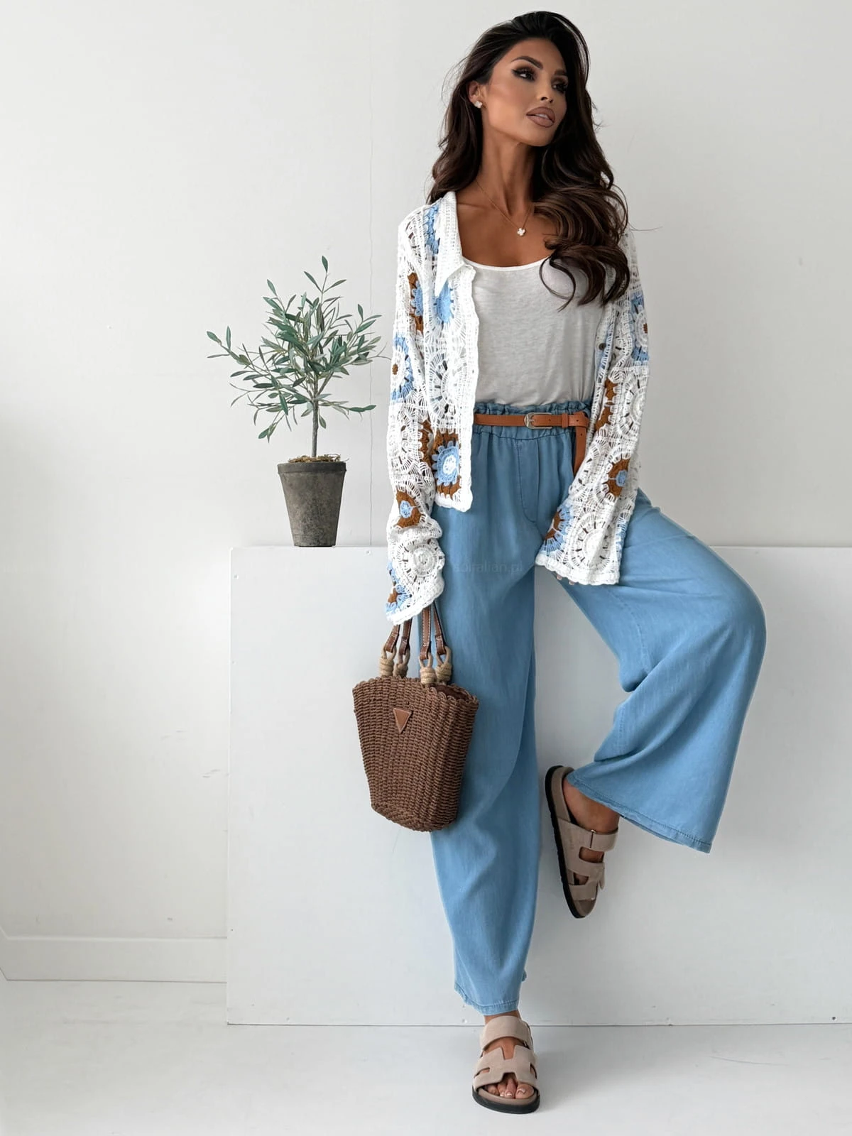 Spodnie wide ADORE jeans z paskiem