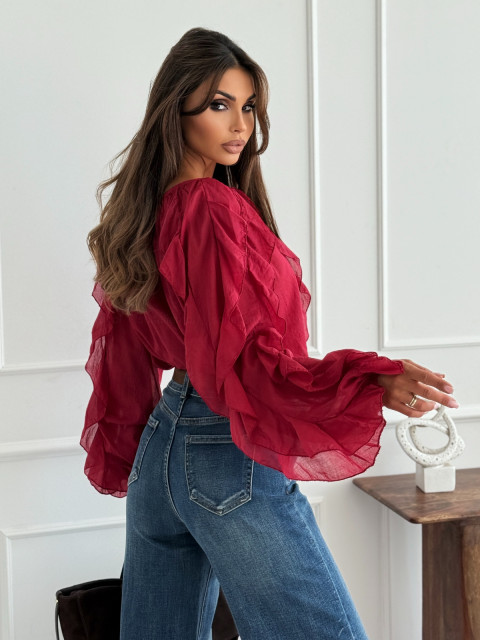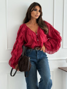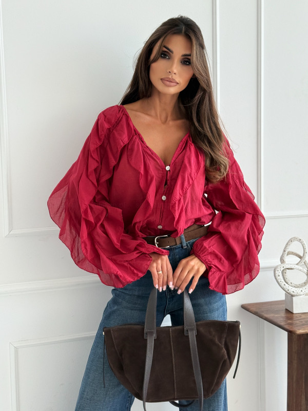 Bluzka koszulowa VOLANT AUTUMN RED z żabotami