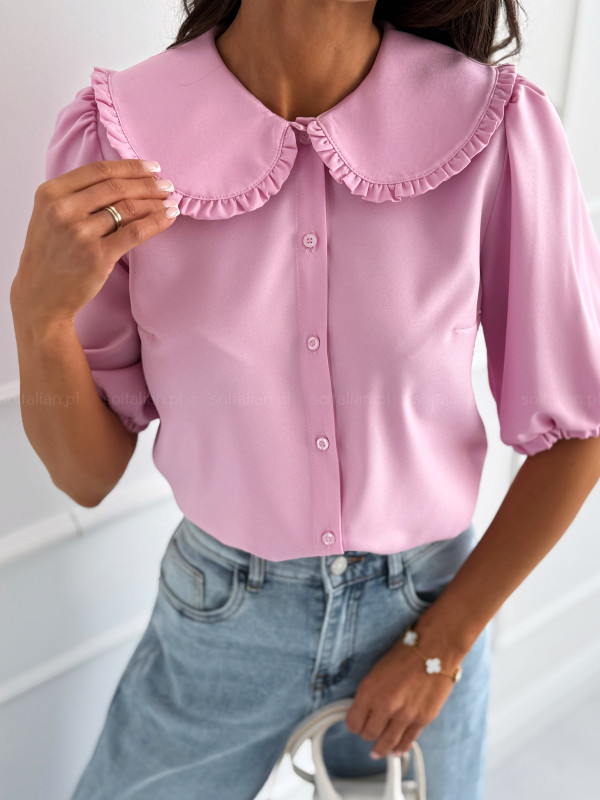 Bluzka koszulowa FRILL candy pink z kołnierzykiem