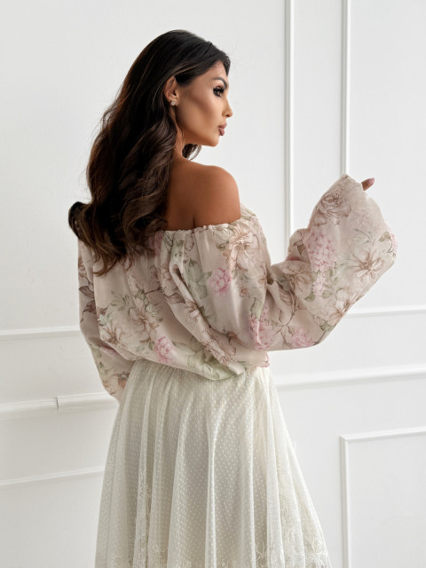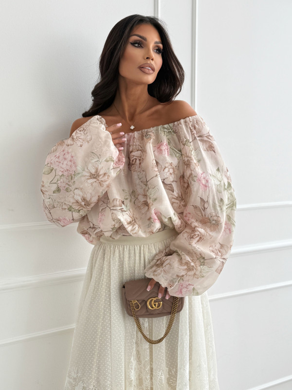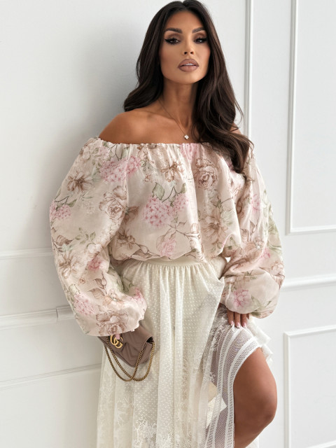 Bluzka/hiszpanka VICHY beige/flowers