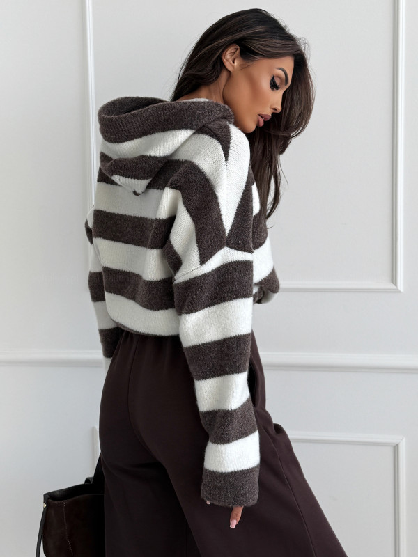 Swetrowa bluza z kapturem COREY choco&creamy strips