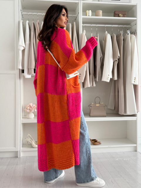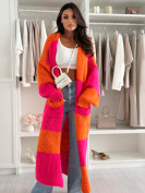Długi wełniany kardigan MAISON orange/fuchsia