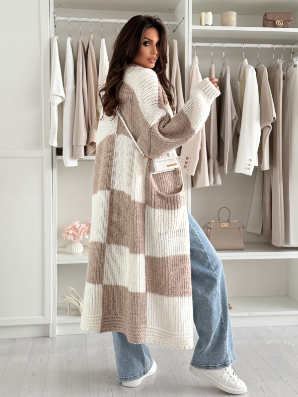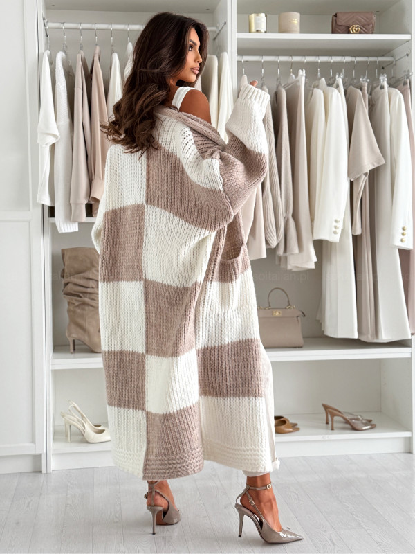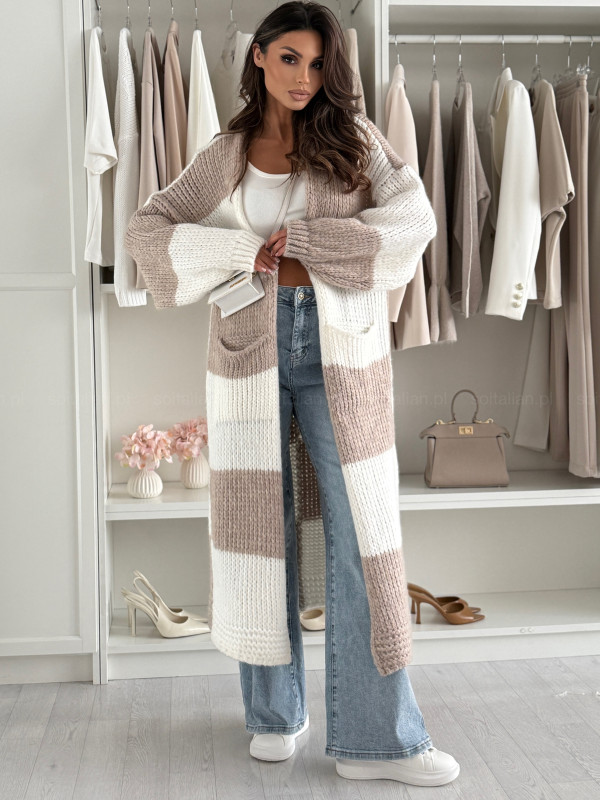 Długi wełniany kardigan MAISON latte/white
