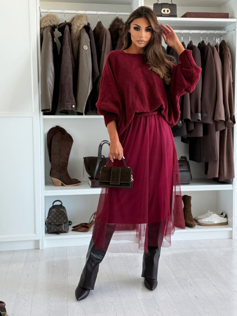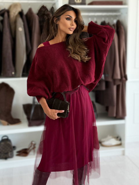 Komplet VANNES BURGUND (sukienka+sweter)