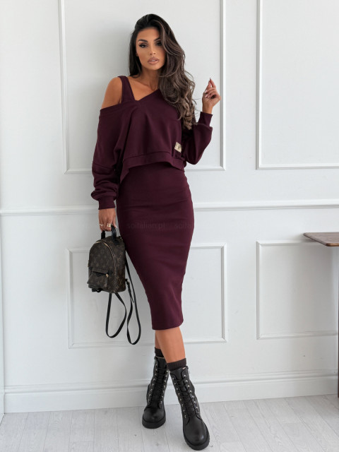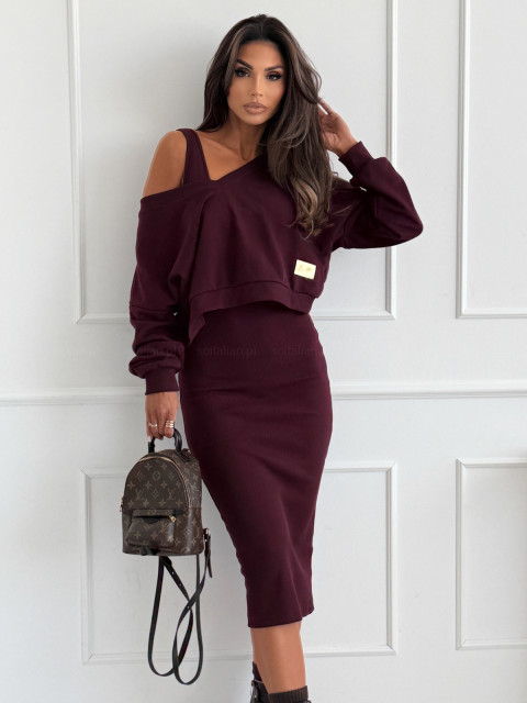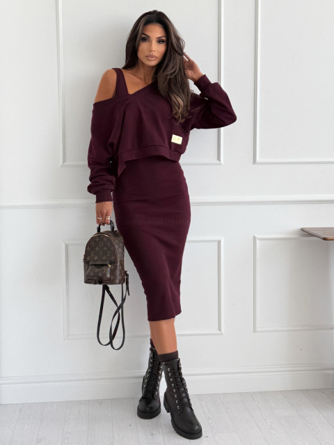 Komplet LENOX HILL BURGUND (sukienka+bluza)