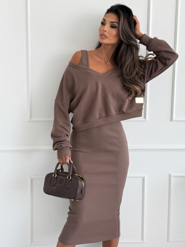 Komplet LENOX HILL MOCHA MOUSSE (sukienka+bluza)