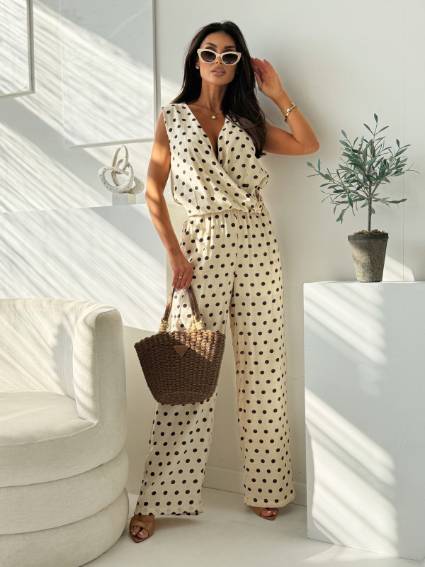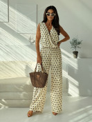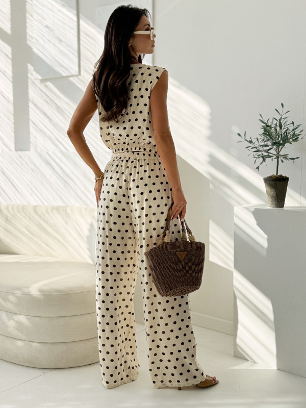Komplet ALENNA DOTS nude/chocolate (top+spodnie)