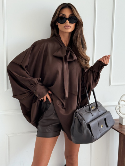 Koszula satynowa AMBER CHOCOLATE z wiązaniem