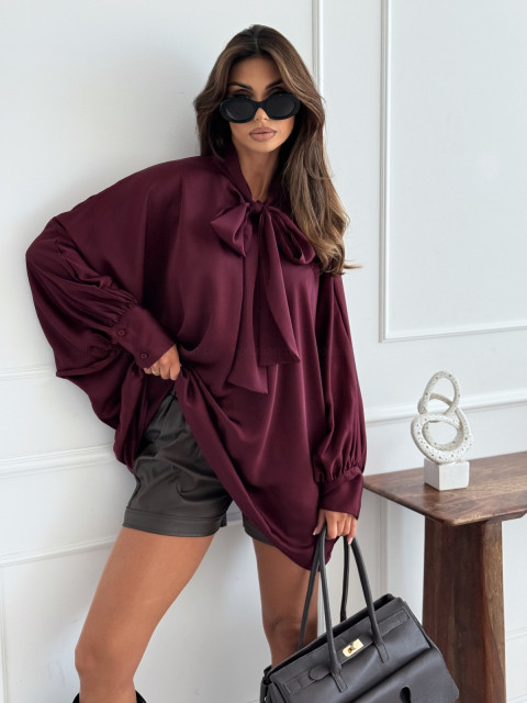 Koszula satynowa AMBER BURGUND z wiązaniem