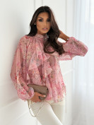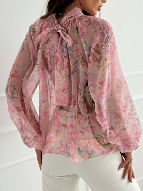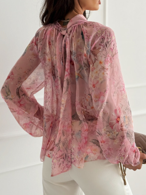 Bluzka koszulowa LILY pink z wiązaniem na plecach