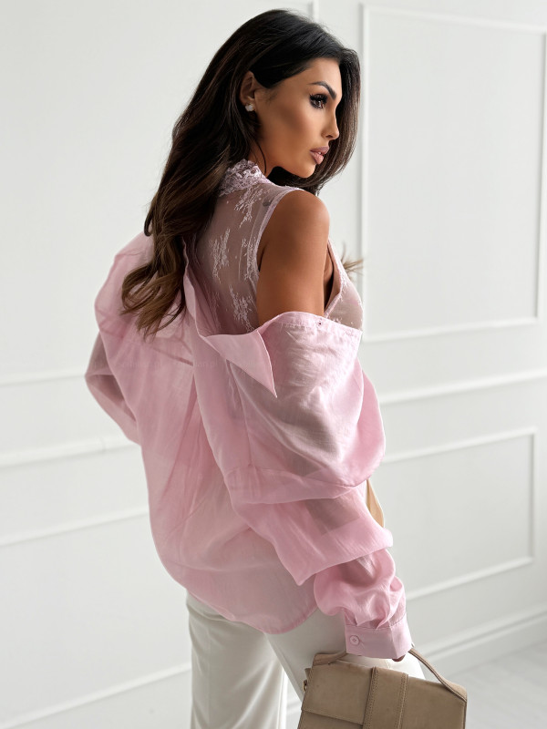 Koszula z koronkowym topem CHANCE powder pink