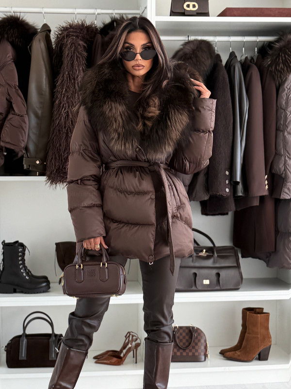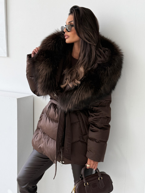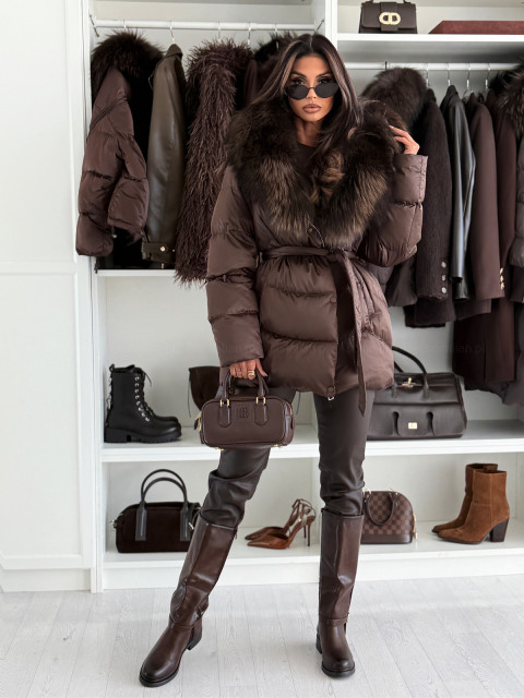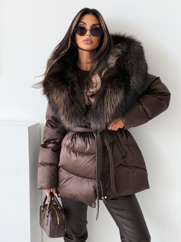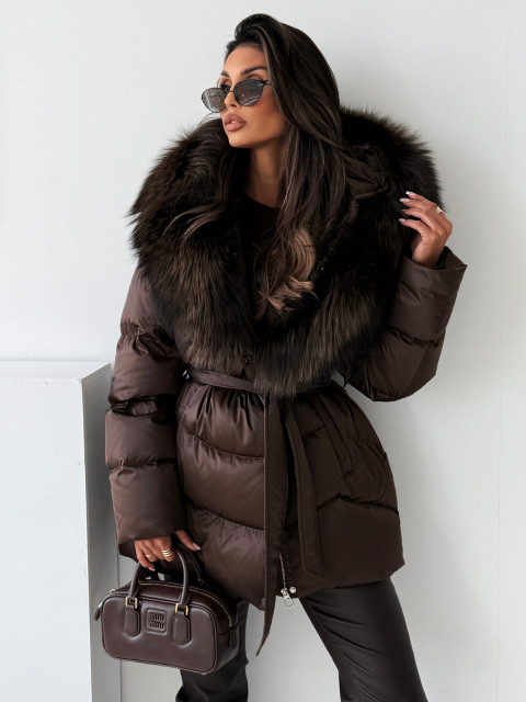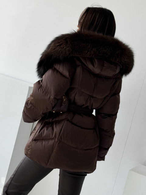 • Kurtka puchowa ASPEN CHOCOLATE z naturalnym futrem