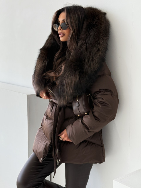 Kurtka puchowa ASPEN CHOCOLATE z naturalnym futrem