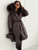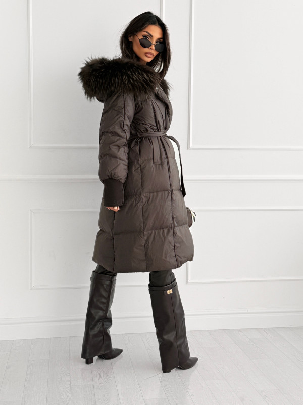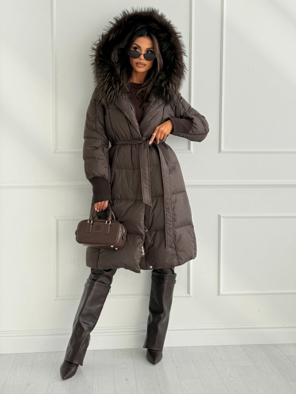 Płaszcz/kurtka puchowa CRYSTAL CREEK CHOCOLATE z naturalnym futrem
