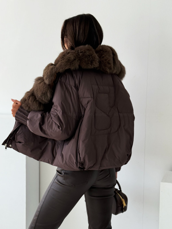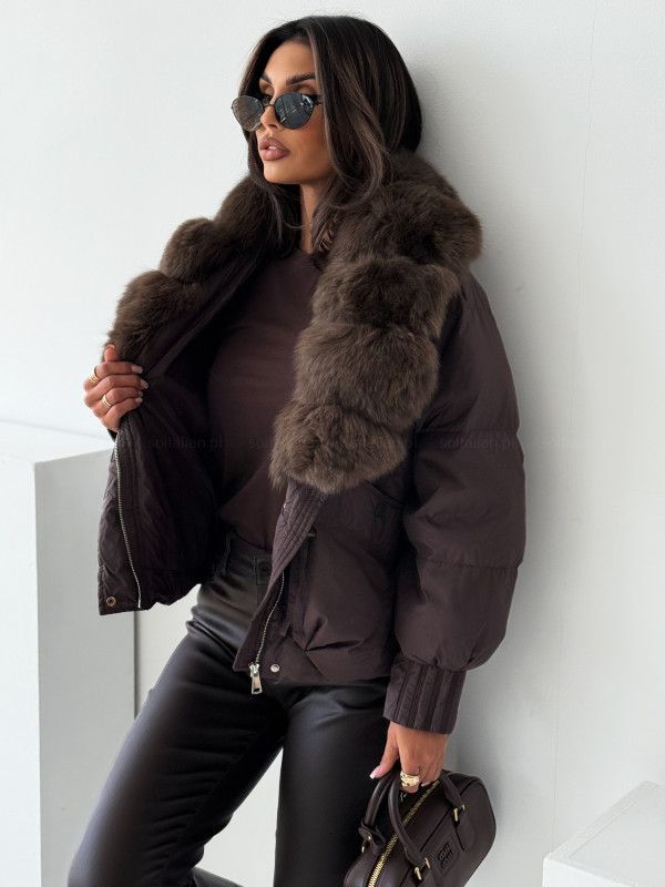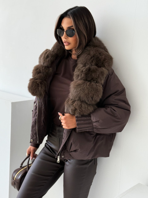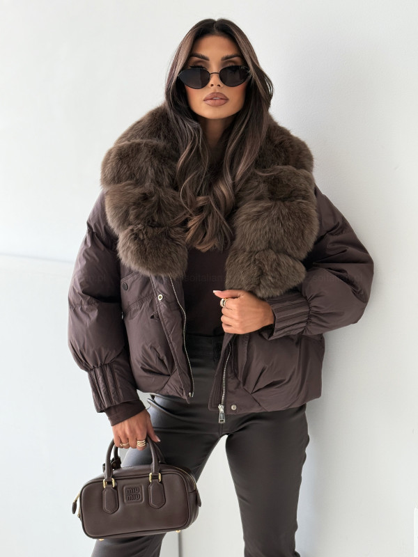 Kurtka puchowa NORTH DOCK CHOCOLATE z naturalnym futrem