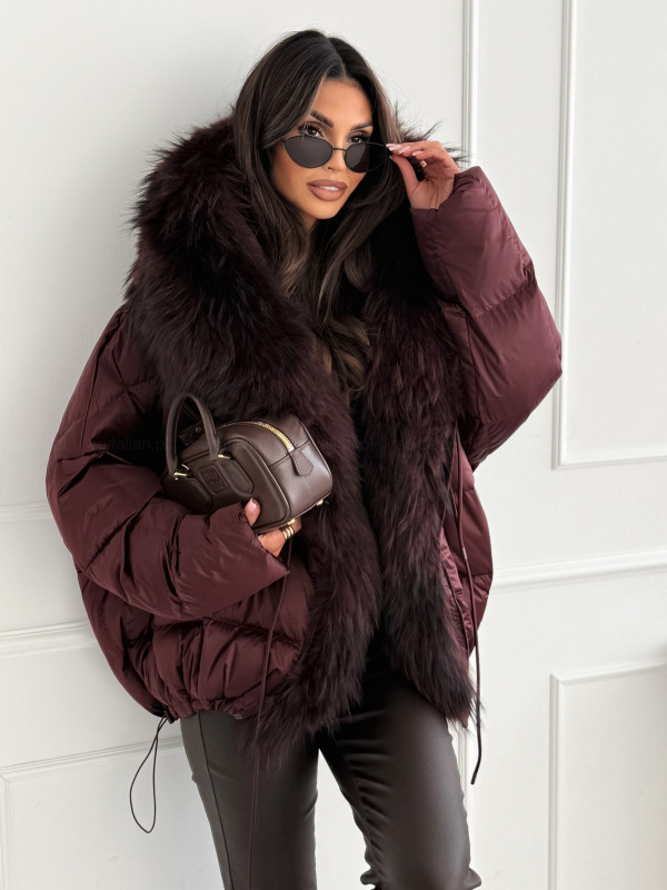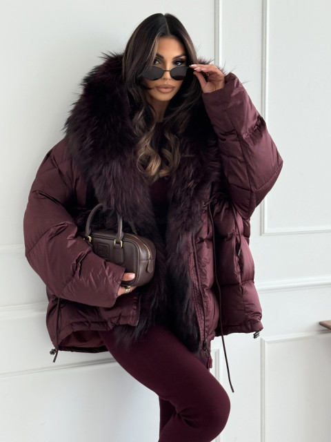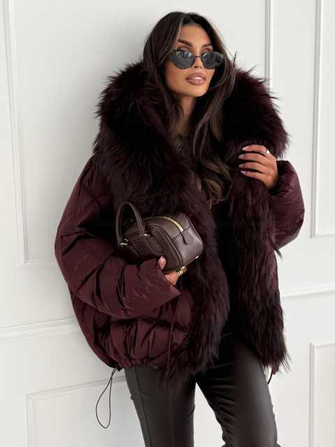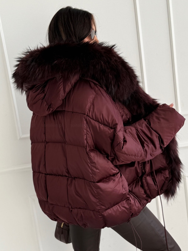 Kurtka puchowa RUSSEL BURGUND z naturalnym futrem