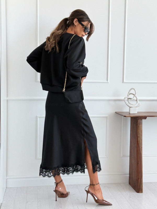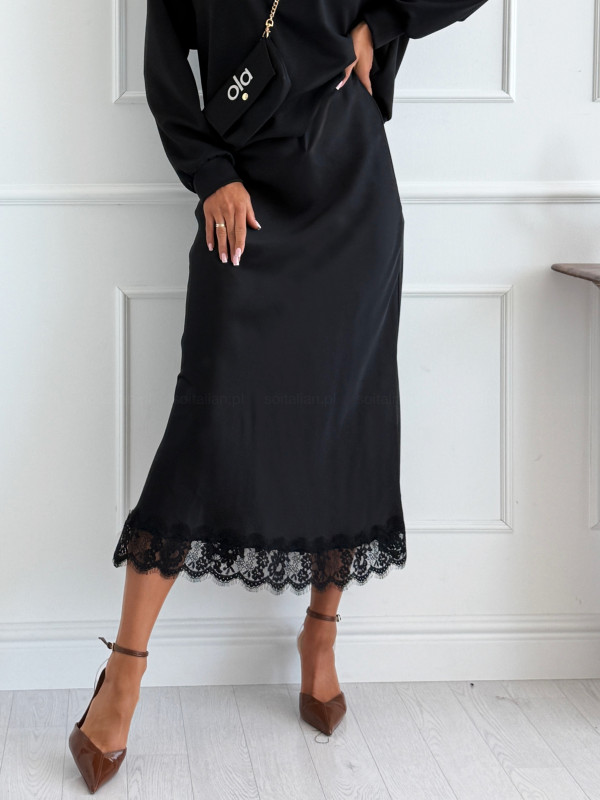 Spódnica satynowa z koronkowym wykończeniem BLACK
