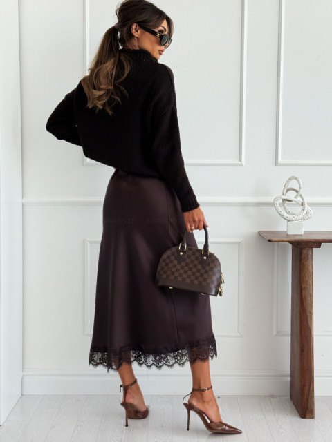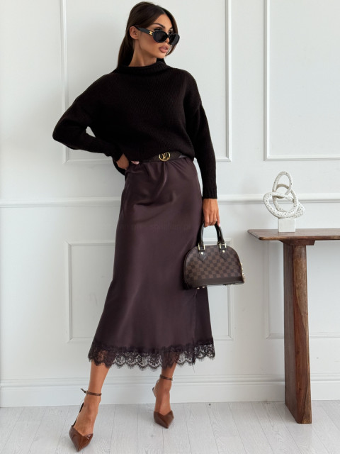 Spódnica satynowa z koronkowym wykończeniem CHOCOLATE
