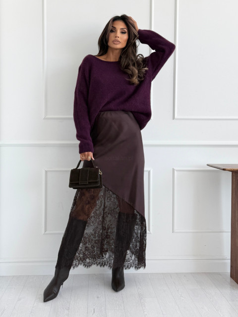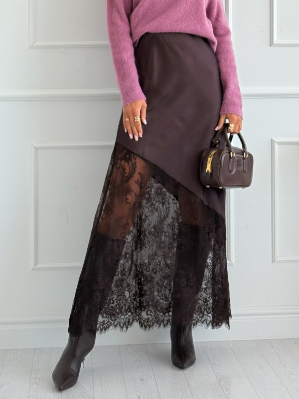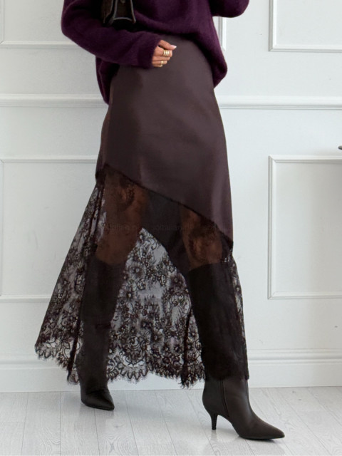 Spódnica satynowa SILVA CHOCOLATE z koronką