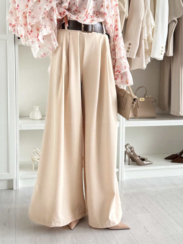 • Spodnie JOYCE WIDE LEG beige z paskiem