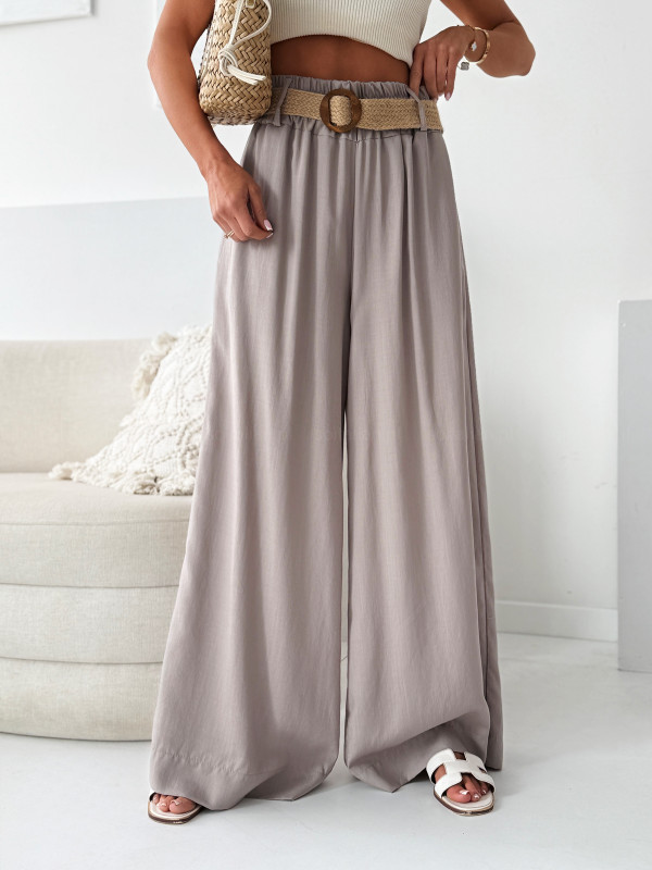 Spodnie wide VERSA fango z paskiem