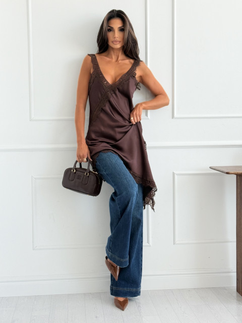Top/halka TORI CHOCOLATE z koronkowym wykończeniem