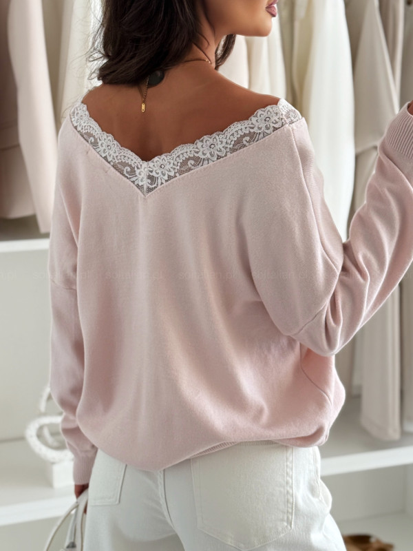 Sweterek AMARIS powder pink z koronką